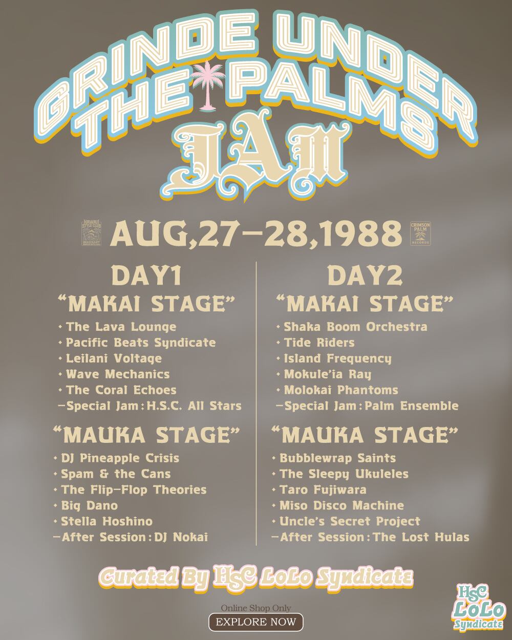 "Grind Under The Palms Jam '88" ハワイアン・フェス・Tシャツ